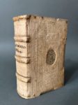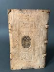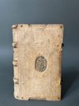 [Reliure aux armes]. ROSS (Alexandre). Les religions du monde, démonstration de toutes les religions & hérésies de l'Asie, Afrique, Amérique & de l'Europe, depuis le commencement du monde jusqu'à présent. A Amsterdam, chez Abraham Wolfgang, 1686. In-12, [6] f., 867 p., [6] f., peau de truie sur ais de bois époque, dos à 3 nerfs bordés d'une roulette à froid, plats ornés à froid d'encadrements de 2 roulettes et de filets, armes estampées en noir au centre de chaque plat, fermoirs (petites piq. de vers en tête du dos, un coin émoussé, cachet gratté au titre, 3 ff. limin. usés en marge, brunissures et qq. taches sans gravité). Alexander Ross (v. 1590-1654), écrivain écossais auteur de travaux de controverse, s'opposa notamment à Hobbes. Il est l'auteur de la première traduction du Coran en Anglais. Nouvelle édition de la traduction française de cet ouvrage sur les religions du monde qui parut initialement en 1666. Elle est illustrée de 16 planches dépliantes gravées sur cuivre dont une en frontispice. Belle reliure monastique portant la date de 1693. Provenance : aux armes de la maison de Trauttmansdorff ; ex-libris manuscrit ancien d'un collège religieux, à l'usage de missionnaires en Autriche.