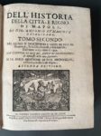 LA FICHE DÉFINITIVE SERA PUBLIÉE DÉBUT SEPTEMBRE /// SUMMONTE (Giovanni Antonio). Historia della citta e regno di Napoli… Ove si trattano le cose piu notabili accadute dalla sua edificatione sin' à tempi nostri ; con l'origine, sito, forma, religione, antica e moderna politia, tribunali, nobiltà, seggi, acque, circuito, amenità, provincie, santi, e chiese… In Napoli, Antonio Bulifon, 1675 [Suivi de] Raccolta di varie notitie historiche, non meno appartenenti all'historia del Summonte... In Napoli, Antonio Bulifon, 1675. . 4 vol. in-4, parchemin ivoire époque, dos à 5 nerfs, titre, auteur, tomaison, et ornements manuscrits, tranches mouchetées rouge et bleu (petites taches aux dos, des cahiers brunis, rousseurs). On trouve ici, relié à la fin du t.4, précédé d'une page de titre particulière aux mêmes adresse et date : Raccolta di varie notitie historiche, non meno appartenenti all'historia del Summonte..., [4] f., 122 p., [3] f.
