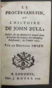 [ARBUTHNOT (John).] SWIFT (Jonathan). Le procès sans fin ou l'histoire de John Bull publiée sur …