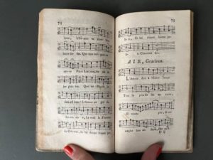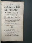 [Théâtre]. Recueil réunissant deux pièces jouées au XVIIIe siècle, en un volume in-12, rel. XIXe s. en parchemin de réemploi, dos lisse, étiq. de titre (rares rouss.). 1. [COLLOMB DE SEILLANS]. La gageure de village, comédie en prose et en un acte. Représentée pour la 1ère fois par les Comédiens françois ordinaires du roi, le 26 mai 1756. Paris, Duchesne, 1756. 82 p., [1] f. (annonce), musique notée. - 2. LE PORTIER du Parnasse, ou Les poëtes réformés, comédie en un acte et en prose. La Haye, Gosse ; Paris, Prault, 1770. [2] f., 63 p.