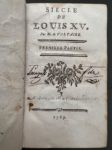 VOLTAIRE. Siècle de Louis XV. S.l., s.n., 1769. Deux parties en 1 vol in-12, 160 p., [2]f. + [1] …