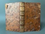 VOLTAIRE. Siècle de Louis XV. S.l., s.n., 1769. Deux parties en 1 vol in-12, 160 p., [2]f. + [1] f., 172 p., basane racinée havane, dos à 5 nerfs, îèce de titre fauve, caissons ornés, filet d'encadrement à froid au plat sup., tranches rouges (rel. frottée, coiffe de queue arrachée, accrocs aux coupes de queue, épidermures, coins émoussés ; petites brunissures en marge de tête, traces d'insecte à la pdt, ex-dono en partie gratté, mouillure claire à la 2e pdt et au dernier cahier Provenance : ex-libris manuscrit ancien à la 1ère pdt, Lesage ; ex-dono (?) gratté A Madame la Marquise de (Lagone ?).
