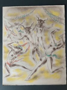 [BERQUE]. LOUŸS (Pierre). Les chansons secrètes de Bilitis. S.l. Aux dépens d'un amateur et pour des amis bibliophiles, 1935. In-4, [59] f. dont 12 pl., en feuilles sous couverture rempliée, chemise demi-maroquin fauve à bandes, dos lisse, titre en noir et 2 couleurs, étui bordé (moullures pâles en marge de qq. f. et pl. ; déch. renforcée d'adhésif au dos de la chemise papier, déch. à couv. rempliée). Édition illustrée de 12 compositions en couleurs attribuées à Jean Berque. Tirage limité à 99 exemplaires : un des 48 exemplaires sur papier pur fil à la forme comportant la suite définitive des 12 compositions en couleurs. Le volume renferme cinq chansons censurées et retirées de l'édition des Chansons de Bilitis de 1925 dont il forme le complément. (Dutel 1196).