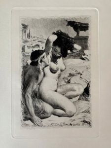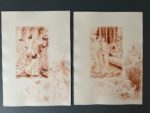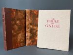 BÉCAT. MONTESQUIEU. Le temple de Gnide. Paris, Eryx, 1954. In-16, en feuilles, couv. rempliée, chemise au dos simili-cuir brun titré, étui (étui frotté). Édition illustrée de 11 pointes sèches originales de Paul-Emile Bécat, dont un frontispice et 10 à pleine page. Tirage à 488 exemplaires sur vélin Annam spécial surfin : exemplaire d'artiste portant la signature de Paul-Emile Bécat à l'encre noire. ; enrichi d'une suite 12 planches avec remarques (les 11 planches et une refusée), tirée en bistre.
