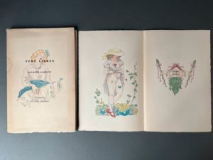 RANSON. RADIGUET (Raymond). Vers libres. La Varenne, A la corne d'abondance, [1939]. In-4, [18] ff., couv. rempliée illustrée, (traces de poussière sur la couv. et mouillure au dos). 28 compositions en couleurs attribuées à René Ranson, dont deux à double page. Ces compositions s'inspirent de celles de Rojankowski, connu sous le pseudonyme de Rojan. Tirage limité à 300 exemplaires, celui-ci n° 146, enrichi d'une suite des illustrations en noir. Sans le le fac-similé du manuscrit autographe des Fiancés de treize ans qui manque souvent (Dutel, 2594 ; Pia, 781).
