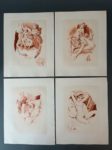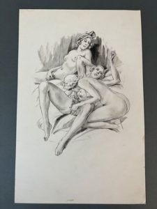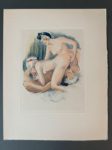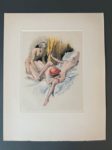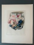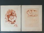 RÉTIF DE LA BRETONNE (Nicolas Edme). La duchesse ou la Femme sylphide, illustré d'eaux-fortes en couleurs. S.l., Aux dépens de quelques bibliophiles, [1948]. In-4, en feuilles, couv. rempliée, chemise et étui éditeur. 20 compositions en couleurs libres, non signées, gravées à l'eau forte, dont 19 planches. Tirage limité à 240 exemplaires : un des 20 (n°2) comprenant un dessin original (encre et crayon noir) et une suite en sanguine des vingt illustrations avec remarques et 4 planches refusées.