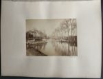 [Canal du Midi] [Album]. DELON (Eugène). Circa 1870. In-plano, 14 planches, demi-chagrin vert bouteille, dos et plats muets (frott. Album de 14 tirages sur papier albuminé, contrecollés sur carton, légende manuscrite sur le carton (probablement de la main du photographe), montés sur onglets, sous serpente. Timbre à sec du photographe en pied de chaque carton : "E. Delon. Photographe. Rue Lafayette 20. Toulouse". 1. Bief de partage [240 x 328 mm] ; 2. Embouchure du canal de Midi dans la Garonne [215 x 350 mm] ; 3.Grand mur du réservoir de Lampy [353 x 250 mm] ; 4. Digue de retenue du réservoir de Saint-Férréol [350 x 263 mm] ; 5. Grand mur du réservoir de Lampy [343 x 265 mm] ; 6. Souterrain de Malpas [253 x 335 mm] ; 7.Prise d'eau dans l'Aude à Moussoulens [335 x 246 mm] ; 8. Monument du Maurouge [330 x 220 mm] ; 9. Pont-canal du Fresquel [335 x 235 mm] ; 10. Vue du canal de Carcassonne [320 x 258 mm] ; 11. Port de Castelnaudary [250 x 338 mm] ; 12. Écluse octotype de Fonséranne [365 x 258 mm] ; 13. Pont du canal de Béziers [248 x 345 mm] ; 14. Pont-jumeaux (jonction du canal de Midi, du canal de Saint-Pierre et du canal latéral à la Dordogne) [250 x 350 mm]. Les deux premiers clichés semblent inédits (une épreuve du cliché n° 2, "Embouchure du canal de Midi dans la Garonne", est à conservées la BNF [PH391P]). Les autres ont fait l'objet de publications commandées par le Ministère des travaux publics : 8 ont été publiées dans : DELON (Eugène), MAYER. Aude, Hérault, Gard, Vaucluse, Ardèche : vues photographiques [Ministère des travaux publics, École nationale des ponts et chaussées] (Paris), 1873 (clichés n° 6 à 13) ; 3 dans : DELON (Eugène). Ariège, Haute Garonne, Gers. [Ministère des travaux publics, École nationale des ponts et chaussées] (Paris), 1873 (clichés n° 3, 5 et 14) ; et 7 dans : LAGRENE (Henri-Melchior de). Les Travaux publics de la France : Routes et ponts, chemins de fer, rivières et canaux, ports de mer, phares et balises... Tome troisième, Rivières et canaux, eaux des villes, irrigations et assainissement des terres. J. Rothschild (Paris), 1876-1883 (clichés 3 à 6 et 12 à 14). Eugène Delon (1823-1894), photographe à Toulouse, est actif à partir de 1856 et jusqu'en 1894 ; ancien associé de Molas, il reprend les affaire de ce dernier et s'installe au 20 rue Louis Napoléon, devenue rue Lafayette, vers 1869, puis au 18 de la même rue vers 1876, et enfin rue Alsace Lorraine dans les années 1890. Spécialiste de la photographie du patrimoine toulousain, on lui doit, outre les clichés réalisés sur la demande du Ministère des travaux publics, plusieurs photographies du Musée de Toulouse. On lui connait également une activité de portraitiste et, dans des domaines tout à fait différents, de musicien et de poète.