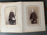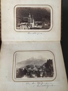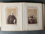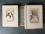 [Allemagne] [Autriche] [Belgique] [Pays-Bas]. Album photo in-12, chagrin rouge estampé à froid d'encadrements polylobés, 2 imposants fermoirs en métal doré (frott., dos décollé ; qq. rouss.). 48 tirages albuminés au format carte de visite avec légende du photographe imprimée. * [Allemagne]. Joh. Mich. WALCH. à Berchtesgaden : 3 vues de Berchtesgaden dont vue du Watzmann, lac Königssee, villa du roi de Bavière (ou villa Max). * [Autriche, Vienne, Krems, Salzbourg]. Ensemble de tirages albuminés de L. ANGERER, J. BAUER, Heinrich HARMSEN, Carl von JAGEMANN, H. KLEE, E. KREPELKA, Adolf OST, Carl MAHLKNECHT, Georg MÄRKL, J.G. POHLNISON (Maler & Fotograf), E. RABENDING, Amand SCHLOSSAREK, G. WÜNSCH, BALOI & WÜRTHLE. 14 des épreuves autrichiennes sont légendées à la main : portraits de Madame la comtesse Hortith, née Bargotzi ; comtesse de Fest??? ; Comtesse Heléna Bargotzi et son mari le comte Hortish ; Monsieur le comte Fest??? ; Madame la Comtesse Bargotzi ; Comtesse de Fest??? ; monsieur le docteur Dolnitscher ; M. Spazsil ; les enfants Fest??? ; madame la comtesse Fest??? ; M. l'évêque de Yeniae ; Mademoiselle de Voyl ; Mademoiselle Nathalie Wittestrausser ; M. Mithozki * [Belgique, Bruxelles]. GHEMAR FRÈRES, Photographes du roi, Bruxelles : Portraits des prince et princesse de Galles, Edouard et Alexandra + Ensemble de tirages albuminés de BRAND FRÈRES, DELABARRE & Cie - Photographie parisienne, Eugène GUÉRIN, KLARY, de MAES et MICHAUX, J.F. MICHIELS, A. MORIAU, Maison Hector de SAEDELER * [Pays-Bas, La Haye]. Ensemble de tirages albuminés de de LAVIETER & Cie, H. PRONK (Saint Jean-Baptiste et l'agneau), van L. STOLLENWERK. * Et quelques-unes anonymes. Ex-dono manuscrit daté du 25 juin 1863 à Bruxelles : « Souvenirs d'amitié offert à ma chère cousine Victoire de Heusch, et explication au feutre noir moderne : Madame de Heush est la belle mère de ma tante Lisa dame Ableloos née Cloof.