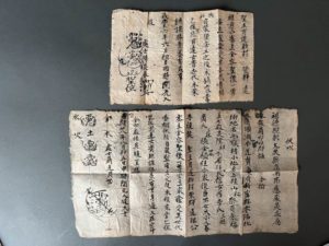 CHINE 2 manuscrits, région du Hunan, fin XIXe - début XXe. 2 pp. in-8. Deux formules incantatoires sans doute taoïstes pour des personnes dont le nom est difficile à lire, émanant du grand royaume des Qing, dernière dynastie chinoise.