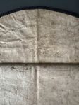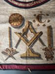 [FRANC-MACONNERIE] Tablier de Maître sur peau à décor rehaussé d'or de symboles maçonniques. 2 signatures manuscrites à l'encre. XIX° siècle. En l'état. 42,5 x 37 cm Voir les lots 99 et 182 du 13 septembre 2023.