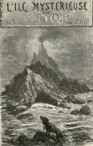 L'Île mystérieuse. Illustrée de 184 dessins par Férat gravés par Barbant. P., Hetzel, "Bibl. d'éducation et de récréation, s.d. (1888), 4°, 616 p., cat. d'édit. in fine, cart. rouge polychrome d'édit. à la bannière, 2ème plat au médaillon noir "Collection Hetzel", tranches dorées (dos frotté, rouss. éparses) (rel. de A. Lenègre)