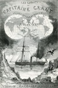 Les Enfants du capitaine Grant. Illustrés de 172 vignettes par Riou gravées par Pannemaker. P., Hetzel, "Bibl. d'éducation et de récréation, s.d. (1868), 4°, 624 p., cart. rouge illustré d'édit., tranches dorées (qq. noirceurs, lég. boursouflures au 2e plat, piqûres in fine sinon bel ex.) (rel. de Ch. Magnier). Première édition illustrée publiée dans un cartonnage "personnalisé". Le premier plat est illustré d'une vignette centrale rectangulaire montrant le Duncan qui fend les eaux sous deux mappemondes dorées. De toute rareté.