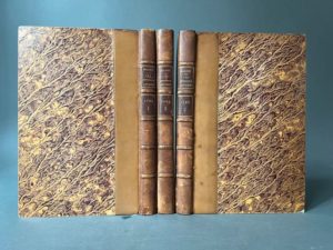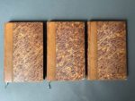 BALZAC (Honoré de). Une ténébreuse affaire. Scènes de la vie politique. Paris, Hippolyte Souverain, 1842. 3 vol. in-8, demi-veau fauve, dos à 5 nerfs ornés d'un pointillé doré, pièces de titre et de tomaison basane havane, tête dorée, non rogné [Durvand] (dos brunis, petites fentes aux mors, l'un des dos à-demi décollé, 1 coin lacunaire, rares brunissures sporadiques). Édition originale. Exemplaire relié avec toutes ses marges. (Carteret I, 78 ; Vicaire I, 219 ; collation conforme à Vicaire, avec les feuillets bis au t.1 que Carteret ne signale pas ; notons également qu'au début du chapitre VII du t.1, la pagination passe de 259 à 272 sans discontinuité du texte ; au t.3, les n° de pages 288 à 297 ne sont pas attribués ; ceci non mentionné par ces bibliographes).