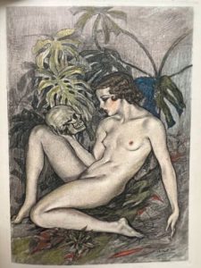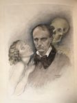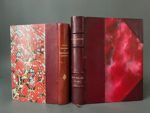 BAUDELAIRE (Charles). Ensemble de deux ouvrages. - Les paradis artificiels. Opium et Haschich. Paris, Crès, 1917. In-12, [2] f., 328 p., [3] f., demi-chagrin rouge post., dos lisse, titre et auteur dorés. Portrait de l'auteur en frontispice. Exemplaire numéroté sur vélin de Rives. - CHIMOT. Les fleurs du mal. Paris, Rombaldi, 1939. In-8, 304 p., [1] f., demi-chagrin à coins grenat époque, dos à quatre nerfs, auteur et titre dorés, tête dorée (mors sup. et un coin frottés). Édition illustrée de 5 planches en héliogravure couleur d'après Édouard Chimot. Exemplaire numéroté sur vergé de Voiron.
