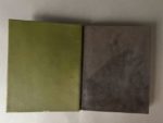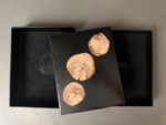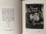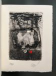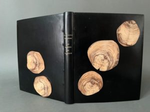 CLAVÉ. BERTHIER (Jean-Marie). Les arbres de passage. Périgueux, Fanlac, 1993. Petit in-4, box noir, dos lisse, auteur et titre ocres, les plats ornés de cinq fines découpes cylindriques de bois d'olivier poncée, contreplats doublés de box vert foncé au contreplat, gardes de daim anthracite, couv. et dos conservés, emboitage toile et box noir, pièce de titre havane [G. Pillard]. Édition originale. Tirage limité à 560 exemplaires : un des 60 sur vélin d'Arches (n°29), signé par l'auteur et comprenant une eau-forte originale de Antoni Clavé justifiée (29/50), et signée et à la mine de plomb par l'artiste.