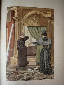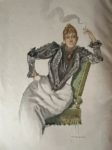 DUEZ, JEANNIOT, MYRBACH. BOURGET (Paul). Cosmopolis. Roman. Paris, Alphonse Lemerre, coll. Edition du Figaro, 1893. In-8, IV-471-[4] p., vélin rigide à la bradel, auteur, titre et date dorés, large décor de volutes dans encadrement de double filet dorés, couv. illustrée et dos conservés (couv. ill. cons. restaurée, rousseurs claires, petit trou en marge p.445-446) Édition originale. Illustrations lithographiées de Duez, Jeanniot et Myrbach dont 4 planches en couleurs et 5 en noir, et nombreuses illustrations in-texte. Tirage limité à 50 exemplaires : un des 25 sur chine (n° 8). Témoins conservés.