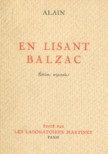 En lisant Balzac. P., Les Laboratoires Martinet, 1935, 8° à fausses marges, br. Edit. orig. tirée à 600 ex. num. sur Hollande Van Gelder.