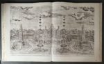 [Chine]. PALAIS, PAVILLONS et jardins construits par Giuseppe Castiglione dans le domaine impérial du Yuan Ming Yuan au Palais d'Eté de Pékin. Paris, Jardin de flore, 1977. In-plano, demi-basane rouge éditeur, dos lisse et muet, titre et illustration dorés au plat sup., intérieur monté sur onglets (chocs en tête et queue du dos, sans gravité ; qq. saliss. aux plats). Edition en fac-similé des vingt planches gravées de 1783 à 1786 par des artistes chinois, d'après les dessins du peintre Giuseppe Castiglione (1688-1766), représentant les constructions, jardins et fabriques édifiés de 1737 à 1766 pour l'Empereur K'ien Long, par les Jésuites de la Cour. L'éditeur signale que seuls 3 exemplaires complet de la suite des gravures originales sont actuellement préservés. L'ouvrage se compose de 2 feuillets doubles (titre en français et anglais), 20 doubles planches imprimées par procédé Daniel Jacomet, et 3 pages (légendes, notes, bibliographie). Tirage limité à 275 exemplaires (n°160) sur vélin de Rives à la forme, en pur chiffon, spécialement fabriqué au Moulin du gué.