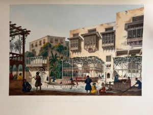 COSTE (Pascal). Architecture arabe ou monuments du Kaire, mesurés et dessinés de 1818 à 1826. Paris, Jardin de Flore, 1978. Grand in-folio, 52 p., pl., reliure éditeur plein cuir fauve, dos à nerfs, plats décorés en or et couleurs dans le style oriental. Nouvelle édition qui s'appuie sur les publications originales de 1827 et 1839, comprenant 70 planches dont 9 en couleurs : vues intérieures et extérieures de mosquées (Touloun, El-Azhar, Barkauk…), édifices publics (fontaines, abreuvoirs…), maisons privées (boutique de barbier…), et plans et détails gravés au trait (comparaison de minarets…). Coste réalisa ces dessins alors qu'il dirigeait plusieurs travaux en Égypte pour le Pacha. Tirage limité à 250 exemplaires numérotés sur papier Japon Van Gelder (n°11).