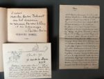 DERÈME (Tristan). La verdure dorée. Poèmes. Paris Emile-Paul Frères 1922. In-12, X-270 p., broché (rousseurs). Edition en partie originale. Envoi autographe signé de l'auteur au faux-titre "à vous mon cher Hector Talvart / au bel écrivain / en souvenir de nous à Paris / et en hommage / Tristan Derême". On y joint deux pièces autographes : un poème signé (1 p. ½ in-8°), et une carte de remerciement à un ami journaliste.