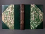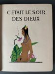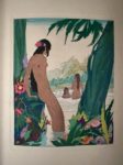 BRUNELLESCHI. DORSENNE (Jean). C'était le soir des dieux. Paris, Mornay, 1926. In-8, demi-chagrin poli vert à coins, dos à 4 nerfs, auteur et titre dorés, tête dorée, couv. illustrée et dos conservés (dos passé et léger frott. sur nerfs ; qq. transferts des ill.). Illustration d'inspiration tahitienne composée de 12 planches de Umberto Brunelleschi gavées sur cuivre par Gorvel, ornements tahitiens de Maurice L'Hoir comprenant bandeaux, lettrines, culs-de-lampe, le tout mis en couleurs au pochoir par Saudé. Tirage limité à 463 exemplaires : un des 350 sur Hollande (n° 302).