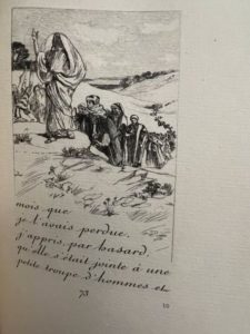 GORGUET. FRANCE (Anatole). Le procurateur de Judée. Paris, Société des amis des livres, 1902. In-16, 84 p. [1] f., maroquin grenat, dos à cinq nerfs, auteur, titre et date dorés, filet doré aux coupes, contreplats bordé de maroquin ornés d'une frise grecque et de fleurons angulaires, le tout doré, , tête dorée, couv. et dos conservés, non rogné [Trinckvel] (légère usures au mors sup.). Edition illustrée de compositions de Aug. Fr. Gorguet gravées à l'eau-forte par Louis Muller. Tirage limité à 130 ex., celui-ci numéro 1, sur papier vergé, nominatif pour la romancière Juliette Adam.