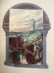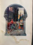 BONDOUX. GEBHART (E.). Autour d'une tiare. Paris, Louis Conard, 1908. Grand in-8, XIII-353 p., [2] f, demi-maroquin à coins marron, dos à cinq nerfs, titre, date et auteur dorés, tête dorée, couv. et dos conservés (2 coins et coiffe de tête frottés, fente en tête du mors sup. ; mouillure en pied d'une pl. en regard de la p.102). 8 pl. et 24 compositions en coul. par Georges Bondoux Tirage à 120 ex. num., celui-ci l'un des 100 sur vélin (n°74). « Édition recherchée » (Carteret, IV, p. 180).