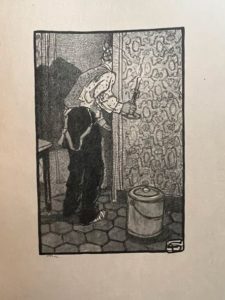 GEO-DUPUIS. GEFFROY (Gustave). La servante. Paris, Librairie de la Collection des Dix. A. Romagnol, 1905. Grand in-8, [3] f., 36 p., [2] f., + suites sous chemise, broché, sous emboîtage (emboîtage défraîchi par une mouillure). 5 pl. et 19 vignettes bois par Géo-Dupuis. Tirage à 350 ex. num. : un des 20 exemplaires de tête au format in-8° jésus, sur Chine ou japon, celui-ci n°13 sur japon, avec trois états des gravures (japon, avant lettre, après lettre).