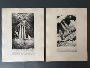 GHIKA (Vladimir). Les intermèdes de Talloire. Fantaisies décoratives très puériles présentées sous forme d'album pour l'amusement de quelques grandes personnes non dépourvues de loisirs et pour la satisfaction de quelques amateurs d'images. Paris, Imp. Victor Jacquemin, 1923. In-4, [6] f., 42 pl., chemise cartonnée crème éditeur à rabats et lacets, dos muet, auteur et titre au plat sup. (rabats déchirés). Rare et bel ouvrage entièrement gravé, à l'exception des 6 premiers feuillets qui renferment la table et la préface du peintre Albert Besnard. Il renferme 44 illustrations de Vladimir Ghika dont 30 planches et 2 vignettes in-texte. Petit-fils du dernier souverain de Moldavie, Vladimir Ghyka, (1873-1954), prêtre, converti au catholicisme en 1923 et mort en prison en Roumanie, est l'auteur de plusieurs ouvrages empreints de spiritualité. Il fut déclaré bienheureux en 2013. Un buste à son effigie fut réalisé par le sculpteur Philippe Besnard, le fils du peintre qui signa la préface. Tirage limité à 255 exemplaires avec signature autographe de l'auteur : un des 5 de tête sur japon (n° II ; sans l'ex-libris, aux initiales et armes du souscripteur, annoncé à la justification).