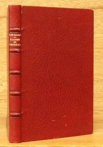 Maximes et pensées. P., Plon, 1852, in-12, plein maroquin cerise, dos titré or à 5 nerfs, tranches dorées, double filet doré sur les coupes, dentelle dorée intér., couv. (abîmée) cons., cachet-ex-libris (qq. frottis, 2e plat forcé avec large mouill. noire, taches et rouss. éparses) (reliure signée de Wendling). Première édition de ces extraits.