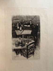 VADASZ. HENNIQUE (Leon). Benjamin Rozes. Paris, A. Romagnol (Coll. de l'Acad. des Goncourt), 1906. Grand In-8, [8] f., 57 p., [1]f., [31] pl., (4] f., demi-basane glacée à la Bradel, marbrée de même que les plats, postérieure, auteur et titre dorés au dos, couv. sup. conservée. Illustrations gravées du peintre et illustrateur hongrois Miklos Vadasz (1884-1927). Tiré à 350 exemplaires numérotés, celui-ci l'un des 20 de tête au format in-8° Jésus, sur vélin d'Arches (n° 13) avec trois états des eaux-fortes, dont l'eau-forte pure.