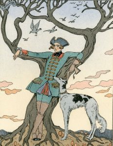 L'Escapade. Illustrations en coul. par George Barbier. P., Mornay, "Les Beaux Livres", 1931, 8°, 285 p., pleine basane fauve, dos lisse ornementé en long, plats ornés à froid, tête ciselée et dorée, 1er plat de couv. (illustrée) cons. Tirage limité à 1075 ex. num. 1/45 Hollande, 3e papier après 3 vieux Japon et 50 Japon.