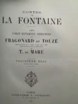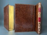 LA FONTAINE (Jean de). Contes. Paris, L. Lemonnyer, 1881-1883. Deux forts vol. in-4, basane havane racinée récente, ornée dans le goût du XVIIIe s., tranches dorées. Réimpression de l'édition de Didot de 1795 avec un commentaire d'Anatole de Montaiglon, et illustrée de reproductions des planches d'origine. Tirée à 500 exemplaires numérotés, celui-ci sur papier vélin, non justifié et sans la suite annoncée pour ce papier. Les couvertures de livraison ont été reliées à la fin de chaque tome. On joint, en reliure identique : - MARE (T. de). Contes de La Fontaine. Les vingt estampes par Fragonard et Touzé... réduites et gravées à l'eau-forte par T. de Mare. P., Conquet, 1881. In-4. Suite tirée à 500 exemplaires, dont 3 sont réunies dans ce volume : 1. Eaux-fortes pures sur japon (n°1 / 50) ; 2. Epreuves non terminées sur japon (un des 50, n°51) ; 3. Avant la lettre sur japon (un des 50, n° 102.)