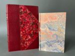 LORRAIN (Jean). Ensemble de 2 ouvrages et d'une monographie. - Le sang des Dieux. Paris, Lemerre, 1882. In-12, [7] f., 153 p., [6] f., demi-maroquin à coins cerise, dos à quatre nerfs, titre, auteur et date dorés, tête dorée, couv. et dos conservés [R. Aussourd] (transfert du front. sur le titre). Edition originale du premier roman de l'auteur, illustrée d'une héliogravure d'après Gustave Moreau. - Contes pour lire à la chandelle. Paris, Mercure de France, 1897. In-18, 175 p., [2] f., cartonnage marbré récent, dos lisse, pièce de titre rouge, couv. et dos conservés (quelques infimes rousseurs) Édition originale. Envoi autographe signé de l'auteur "À Vincent Lorant / pour lui faire / rever les bijoux qu'il rêve / ton ami / Jean Lorrain". Vincent Lorant-Heilbronn était un affichiste et illustrateur Art Nouveau ami de Lorrain, il illustra pour lui "Le Vice errant" qui parut chez Ollendorf en 1902. On joint : KYRIA (Pierre). Jean Lorrain. P., Seghers, 1973. Grand in-8, broché. Exemplaire numéroté, non coupé. Soit 3 volumes