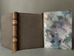 CASSIERS. MAUCLAIR (Camille). Le charme de Bruges. Paris, Piazza, 1929. In-8, maroquin gris, dos à 4 nerfs saillants, auteur, titre et date dorés, filet doré aux coupes, contreplats bordés d'un décor mosaïqué havane agrémenté de fleurettes lilas, doubles gardes, tête dorée, couv. et dos conservés, non rogné, étui bordé [J. Van West] (dos très lég. passé). 18 compositions de H. Cassiers rehaussées de couleurs au pochoir : couverture, 5 planches dont le frontispice et 12 bandeaux. Tirage à 600 exemplaires sur japon impérial : un des 100 réservés à la Belgique (n° 3), comprenant deux suites illustrations, y compris la couverture, sur papier vélin, l'une en couleurs, l'autre en noir. Provenance : Dr. G. Marchal (ex-libris gravé sur bois par R. Bigot tiré sur japon)