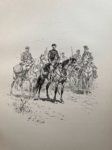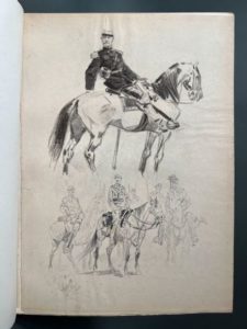 QUATRELLES. À coups de fusil. Paris, Charpentier, 1877. In-4, [2] f., VI-166 p., [1] f., demi-chagrin à coins havane, dos à cinq nerfs, titre et auteur dorés, tête dorée (coiffes et coins un peu frottés ; rousseurs et taches éparses, feuillet de pl. entre les pages 120 et 121 dérelié). Edition illustrée de trente compositions hors-texte d'Alphonse de Neuville. Exemplaire comportant les 2 planches supprimée par la censure. Enrichi de 4 dessins originaux placés en regard des planches correspondantes aux p. 70, 102, 119 et 158.