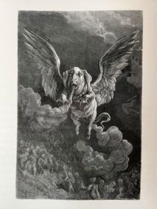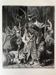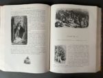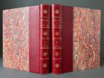 [DORÉ]. RABELAIS (François). ‎Oeuvres de Rabelais, texte collationné sur les éditions originales avec une vie de l'auteur, des notes et un glossaire, illustrations de Gustave Doré Paris, Garnier Frères, 1873, in-folio, 2 volumes, (4) , XLIV , 476 (4) , 496 pp., 60 planches et un portrait., Demi-chagrin cerise à coins, dos à nerfs, têtes dorée. Reliure moderne. (mouillure claire au tome 2) Premier tirage. L'illustration se compose de 29 pl. au Tome I et de 31 au tome II, ainsi que de nombreuses illustrations gravées sur bois formant en-tête de chapitre et cul-de-lampe. Gustave Doré qui avait illustré, en 1854, le Rabelais de l'éditeur Bry, refait dans un format plus ample sa curieuse et fantastique évocation du Moyen Age. Bon exemplaire, mouillure claire en marge des feuillets sur tout le second volume. (Leblanc, Catalogue de l'oeuvre complet de Gustave Doré, 290-291).