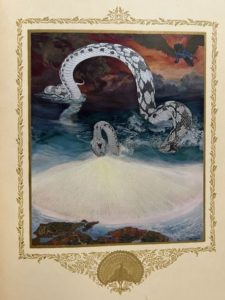 CARRÉ. ROSENTHAL (Léonard). Au jardin des gemmes. Paris, éditions Piazza, 1924. In-4, 158 p., [1] f., demi-maroquin vert époque, dos à quatre nerfs, titre et auteur dorés, tête dorée, couv. et dos conservés (dos passé). Édition illustrée de 12 compositions hors-texte par Léon Carré, sous serpentes légendées, et dans un encadrement doré. Tirage limité à 2250 exemplaires : un des 250 avec les gravures en couleurs, n° CCVIII offert par Léonard Rosenthal à monsieur R. Sandoz.