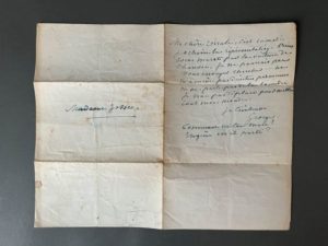 SAND (George). La comtesse de Rudolstadt. Paris, L. de Potter, 1844. 5 vol. in-8, demi-veau havane époquee, dos lisse, auteur, titre, tomaison, filet et frise dorés (dos passés et frottés, 2 mors sup. et 1 mors inf. faibles, coiffes du t.1 arrachées ; rouss. claires). Édition originale. Exemplaire accompagné d'une lettre autographe signée de George Sand à « Madame Josse » à l'encre bleue, ¾ de p. in-8° sur 1 f. in-4 plié. Il s'agit Ursule Josse, nièce d'une femme de chambre de Nohant qui partagea les jeux de Georges Sand enfant, et avec laquelle elle conserva des liens amicaux. La romancière la convie à une représentation, s'excuse de ne pouvoir l'envoyer chercher et ajoute « ne m'amène pas d'autres personnes et ne parle pas de la comédie [...] ».