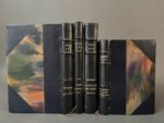 SÉE (Edmond). 4 vol. - Ce soir... Notes et impressions dramatiques. Paris, Renaissance du livre, [1922]. In-12, 322 p., demi-maroquin bleu nuit à coins, dos à quatre nerfs, titre et auteur dorés, tête dorée, couv. et dos conservés [Kra] (mors fendillés, papier jauni). Edition originale. Envoi autographe signé de l'auteur « à mon cher Raymond... ». - Saison d'amour. Comédie en trois actes. Paris, Librairie théâtrale, [1919]. In-12, XI-140 p., demi-maroquin bleu nuit à coins, dos à quatre nerfs, titre et auteur dorés, tête dorée, couv. et dos conservés [Kra] (mors frottés, papier jauni). Envoi autographe signé de l'auteur à François Sée. - Le théâtre des autres. Critiques dramatiques. 2e série, 1912-1913. Paris, Ollendorf. [1914]. In-12, 327 p., demi-maroquin bleu nuit à coins, dos à quatre nerfs, titre et auteur dorés, tête dorée, couv. et dos conservés [Kra] (mors sup. frotté, papier jauni). - Petits dialogues sur le théâtre et l'art dramatique. Paris, Bernard Grasset, 1913. In-18, [3] f., 180 p., [1] f., demi-maroquin bleu nuit à coins, dos à quatre nerfs, titre et auteur dorés, tête dorée, couv. et dos conservés [Kra] (mors frottés). Envoi autographe signé de l'auteur, à Raymond.