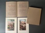 SZYK. LIVRE (Le) d'Esther. Paris, H. Piazza, 1925. In-4, broché, couv. rempliée, étui. 20 miniatures de style oriental en couleurs dont 19 planches de Arthur Szyk. Nouvelle traduction par Robert Schmidt, avec le texte hébreu. Tirage limité à 950 exemplaires : un des 775 sur vélin (n°695). Notre exemplaire est enrichi du prospectus comprenant 2 planches.