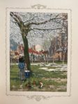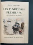 VERHAEREN (Emile). 2 ouvrages. - Les tendresses premières. Paris, Piazza, 1942. In-8, [5] f., 105 p., [2] f., chagrin olive postérieur, dos à cinq nerfs soulignés de filets dorés, titre et auteur dorés, lieu et date en queue, encadrement d'un filet doré aux plats, tête dorée, chasses dorées, couv. et dos conservés (dos passé). Illustrations en couleurs de H.Cassiers. Tirage à 1000 exemplaires : l'un des 800 sur vélin, n° 333. - Les villes à pignons. Paris, Piazza, [1922]. In-8, 160 p., [3] f., broché, couv. rempliée. Illustré de 41 compositions en couleurs d'Henri Cassiers dont 1 frontispice et 15 planches. Tirage à 900 exemplaires : l'un des 720 sur vélin des papeteries Blanchet et Kléber, n° 502.