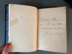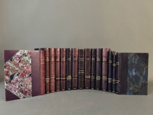 VIVIEN (Renée). Exceptionnel ensemble de 15 ouvrages - Etudes et préludes. Paris, Alphonse Lemerre, 1901. In-12, [3] f., 157 p., [1] f., demi-chagrin violet à coins, dos à cinq nerfs, auteur et titre dorés, tête dorée [Atelier Laurenchet]. Edition originale. (C. Bac, Inventaire, 2003, p. 61). - Cendres et poussières. Paris, Alphonse Lemerre, 1902. In-12, [4] f., 120 p., [1] f., demi-chagrin bleu nuit à coins post., dos à quatre nerfs, auteur et titre dorés, date en queue, couv. conservée (dos passé violet). Edition originale. (C. Bac, Inventaire, 2003, p.67). - Du vert au violet. Paris, Alphonse Lemerre, 1903. In-12, [4] f., 148 p., [1] f., demi-chagrin bleu nuit à coins post., dos à quatre nerfs, auteur et titre dorés, date en queue, couv. et dos conservés (dos passé brun). Edition originale. (C. Bac, Inventaire, 2003, p. 87). Envoi autographe signé de l'auteur à « madame Parrhisia », pseudonyme de Blanche Cremnitz (1848-1918), auteur de romans historiques. - Sapho, traduction nouvelle avec le texte grec. Paris, Alphonse Lemerre, 1903. In-12, [2] f., XII-146 p., [3] f., demi-chagrin bleu nuit à coins post., dos à quatre nerfs, auteur et titre dorés, date en queue, couv. conservée (dos passé violet). Edition originale. (C. Bac, Inventaire, 2003, p. 83). Avec une carte de visite de Charles-Brun, agrégé de lettres. - Evocations. Paris, Alphonse Lemerre, 1903. In-12, [3] f., 164 p., [1] f., demi-chagrin bleu nuit à coins post., dos à quatre nerfs, auteur et titre dorés, date en queue, couv. et dos conservés. Edition originale. (C. Bac, Inventaire, 2003, p.77). - Sapho et huit poétesses grecques. Textes et traductions. Paris, Alphonse Lemerre, 1904. In-12, [2] f., 210 p., [1] f., demi-chagrin bleu nuit à coins post., dos à quatre nerfs, auteur et titre dorés, date en queue, couv. conservée. Edition originale du dernier ouvrage publié par René Vivien avant sa disparition. (C. Bac, Inventaire, 2003, p.141). - La dame à la louve. Paris, Alphonse Lemerre, 1904. In-12, [2] f., 224 p., [1] f., demi-chagrin bleu nuit à coins post., dos à 5 nerfs, auteur et titre dorés, date en queue, couv. et dos conservés (dos passé violet, marges jaunies). Edition originale. (C. Bac, Inventaire, 2003, p.101). - La dame à la louve. Paris, Alphonse Lemerre, 1904. In-12, [2] f., 224 p., [1] f., demi-chagrin bleu nuit coins post., dos à 5 nerfs, auteur et titre dorés, date en queue, couv. et dos conservés. Remise en vente de l'édition originale avec une nouvelle couverture non illustrée. (C. Bac, Inventaire, 2003, p.103). - Une femme m'apparut. Paris, Alphonse Lemerre, 1905. In-12, [4] f., 226 p., [1] f., demi-chagrin bleu nuit à coins post., dos à quatre nerfs, auteur et titre dorés, date en queue, couv. et dos conservés (dos un peu passé, léger choc sur les nerfs). Premier roman de Renée Vivien. Nouvelle édition dans le texte diffère beaucoup de l'édition originale parue en 1904. (C. Bac, Inventaire, 2003, p.107). - Evocations. Paris, Alphonse Lemerre, 1905. In-12, [3] f., 164 p., [1] f., demi-chagrin bleu nuit à coins post., dos à quatre nerfs, auteur et titre dorés, date en queue, couv. illustrée par Lévy Dhurmer et dos conservés (dos passé violet). Edition originale de ce recueil de poèmes. (C. Bac, Inventaire, 2003, p.77). - À l'heure des mains jointes. Paris, Alphonse Lemerre, 1906. In-12, [4] f., 163 p., [1] f., demi-chagrin bleu nuit à coins post., dos à quatre nerfs, auteur et titre dorés, date en queue, couv. illustrée et dos conservés. Edition originale. (C. Bac, Inventaire, 2003, p.113). - À l'heure des mains jointes. Paris, Alphonse Lemerre, 1906. In-12, [4] f., 163 p., [1] f., demi-chagrin bleu nuit à coins post., dos à quatre nerfs, auteur et titre dorés, date en queue, couv. illustrée et dos conservés (dos passé violet). Edition originale. Exemplaire comportant une couverture illustrée à l'adresse de l'éditeur Sansot et non signalée par C. Bac. (C. Bac, Inventaire, 2003, p.113). - Chansons pour mon ombre. Paris, Alphonse Lemerre, 1907. In-12, [2] f., 94 p., [1] f., demi-chagrin bleu nuit à coins post., dos à quatre nerfs, auteur et titre dorés, date en queue, couv. et dos conservés. Edition originale publiée sous le nom de naissance de Renée Vivien : Pauline M. Tarn. (C. Bac, Inventaire, 2003, p. 117). - Le Christ, Aphrodite et M. Pépin. Paris, Sansot, 1907. In-12, [1] f. bl., 80 p., [2] f. bl., demi-chagrin bleu nuit à coins post., dos à quatre nerfs, auteur et titre dorés, date en queue, couv. et dos conservés (patits défaut aux coins ; rouss. lég.). Edition originale. (C. Bac, Inventaire, 2003, p.127). - Vagabondages. Paris, Sansot, [1919]. In-12, 104 p., demi-chagrin bleu nuit à coins post., dos à quatre nerfs, auteur et titre dorés, date en queue, couv. et dos conservés. Edition originale tirée à 270 ex. : un des 200 sur vergé (n°89). (C. Bac, Inventaire, 2003, p.169). Un feuillet d'anonce du livre est inséré.