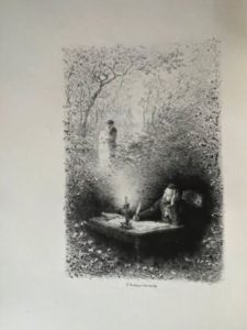 RUDAUX. ZOLA (Émile). Nouveaux contes à Ninon. Paris, Conquet, 1886. 2 vol. in-12, brochés (dos insolés). Edition illustrée de 31 compositions dessinées et gravées à l'eau-forte par Ed. Rudaux, dont une en frontispice et 30 dans le texte. Un des 350 exemplaires sur vélin du Marais à la forme (n°189), seul grand papier après 150 japon.