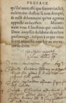 Intéressant exemplaire interfolié de papier blanc comportant de nombreuses annotations manuscrites du xvie siècle, de plusieurs mains, dans une curieuse reliure à entrelacs de l'époque.