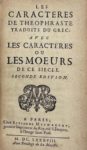 LA BRUYÈRE (Jean de) — Les Caractères de Théophraste traduits du grec, avec les Caractères ou les mœurs de ce siècle. Seconde édition.