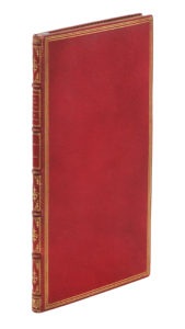 Paris, J. Dumoulin, 1853. In-8 de 23 pp., maroquin rouge, triple filet doré, dos orné, dentelle intérieure, tranches dorées (Trautz-Bauzonnet).Édition rarissime de l'Apologie des Noëls de la Roulotte et du Tillot en patois bourguignon publiée par Henri Burgaud Des Marets. Elle n'a été tirée qu'à 25 exemplaires, dont un sur peau de vélin et 24 sur chine.