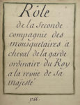 [MANUSCRIT] — Rôle de la Seconde compagnie des mousquetaires à cheval de la garde ordinaire du Roy à la revüe de Sa Majesté. S.l.,