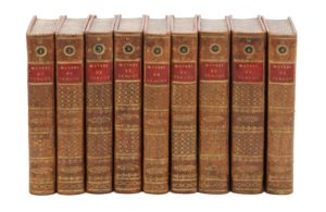 Delance, 1808-1811. 9 volumes in-8, veau raciné, dos orné, tranches jaspées (Reliure de l'époque).Première édition collective des œuvres de Turgot, éditée par Dupont de Nemours.