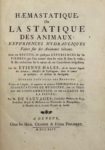 HALES (Stephen) — Hæmastatique, ou la statique des animaux : expériences hydrauliques faites sur des animaux vivans.